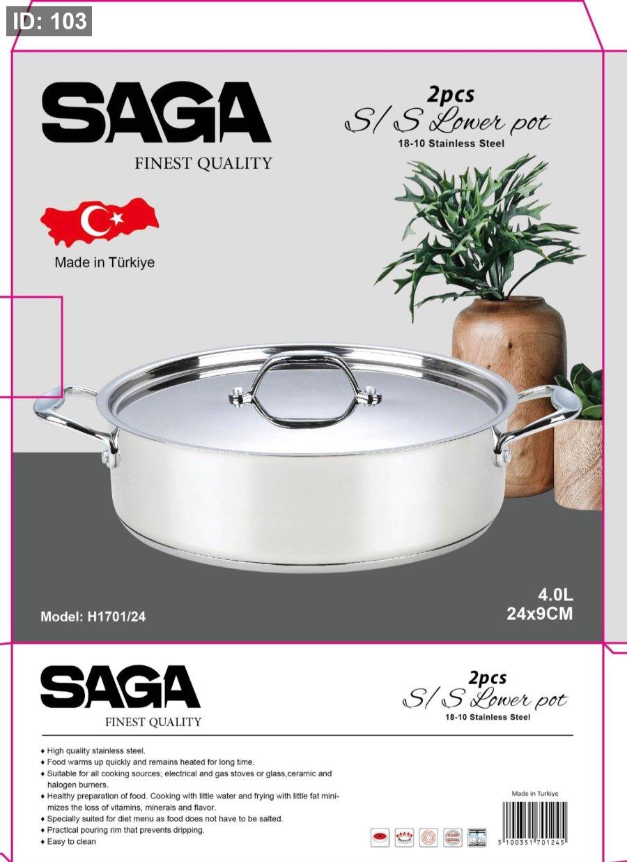 قدر ساجا التركي من الفولاذ المقاوم للصدأ 18/10 | الموديل: H1701/24 | 24 سم - 4 لتر