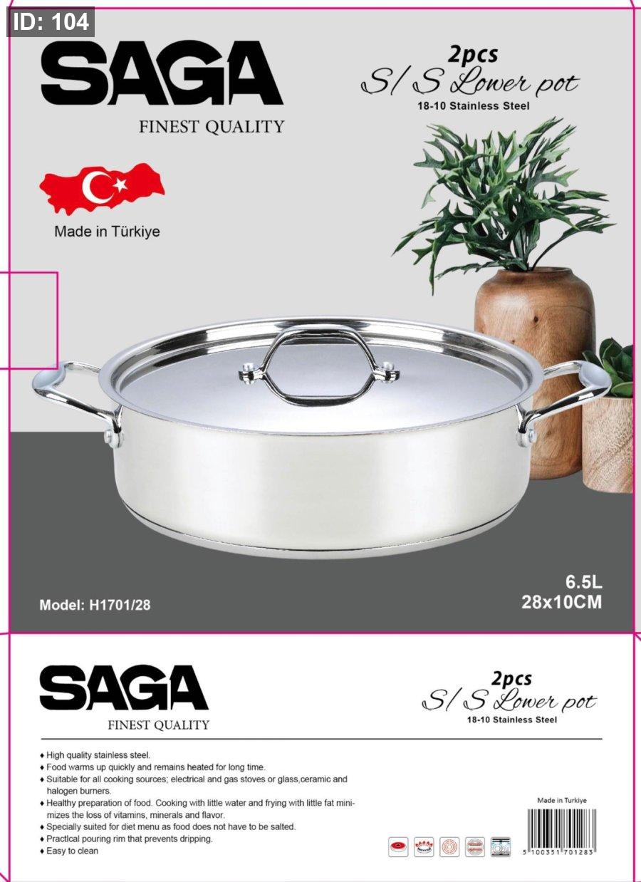 قدر ساجا التركي من الفولاذ المقاوم للصدأ 18/10 | الموديل: H1701/28 | 28 سم - 6.5 لتر