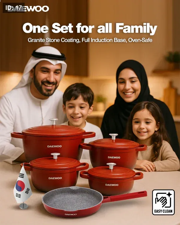 ✅ ارتقِ بتجربة الطهي الخاصة بك مع مجموعة طهي الجرانيت المكونة من 9 قطع من سلسلة Daewoo TS