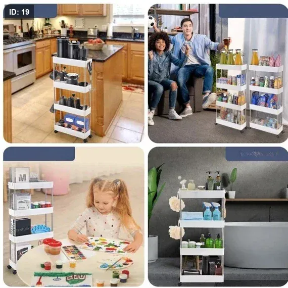 رفوف تخزين بلاستيكية من 4 طبقات بعجلات