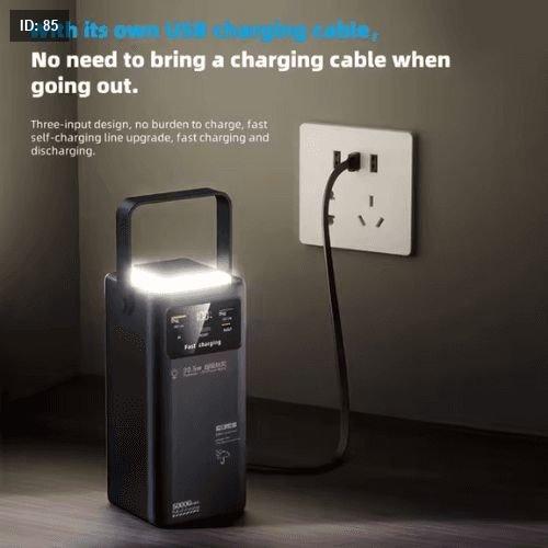 سعة خرافية (60,000mAh): تشحن هاتفك من 10 إلى 15 مرة! (حسب نوع جهازك). مثالي للسفر، التخييم، وانقطاع الكهرباء.