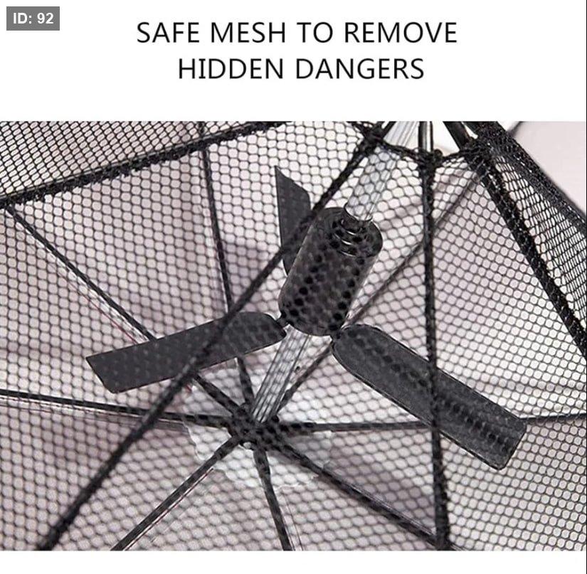 تصميم متين لمظلة مقاومة للرياح: شاش أمان لمنع الاتصال الآمن بالمروحة. ذيل المظلة دقيق وغير قابل للانزلاق. حبات المظلة المدمجة متصلة بمياه المطر المستديرة. تحدى العصا لجعل المظلة أقوى.